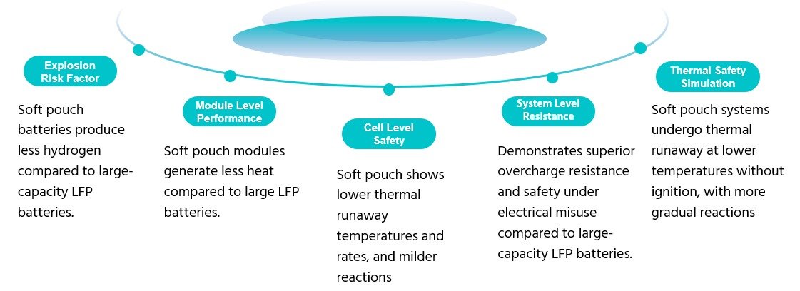 Pylontech ha analizado la seguridad de las baterías de diferentes capacidades y ha descubierto que, durante las pruebas de sobrecarga y calefacción, los sistemas de baterías pequeñas de bolsa blanda muestran varias ventajas sobre las baterías LFP de gran capacidad. Para los productos de almacenamiento de energía residencial, Pylontech prioriza las baterías pequeñas de bolsa blanda para mejorar la seguridad.